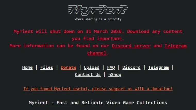 据 Rock Paper Shotgun、Kotaku 等媒体的消息,专注于复古游戏 ROM 保存与分发的网站 Myrient 宣布即将于 2026 年 3 月 31 日停运(2 月 26 日起已关停上传功能),运营者 Alexey 近期在网站醒目位置和社群发布公告,请用户抓紧剩余时间内下载需要的内容。Myrient 最早于 2022 年 10 月上线,始终保持无广告、无付费墙、无需登录的运营模式,托管了超 390TB、整理有序的游戏 ROM。